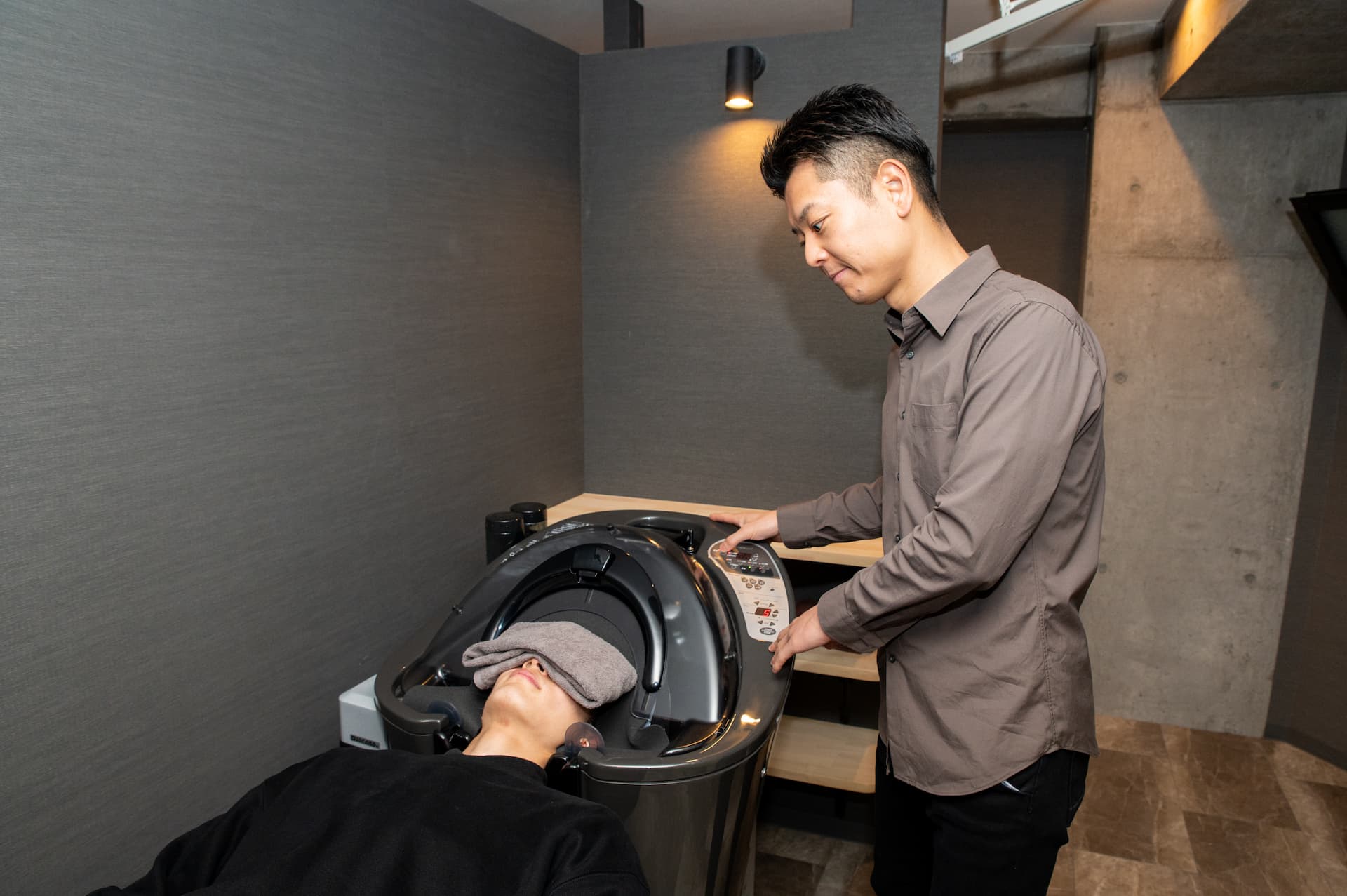 当サロンは完全予約制でかつ完全個室のため、他人の目を気にせずリラックスして頭皮ケアに集中いただけます。また、セルフサービス(お客様ご自身)でマシン操作をしていただくことで、効果的な頭皮ケアを安価にご提供することが可能となっております。