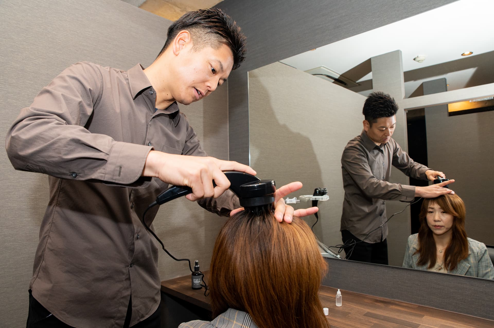 最先端マシンで発毛促進剤を浸透